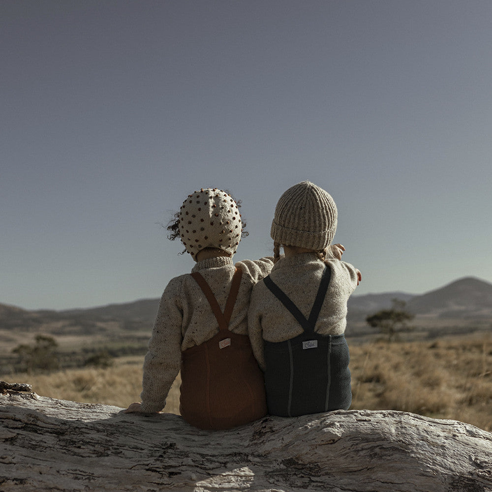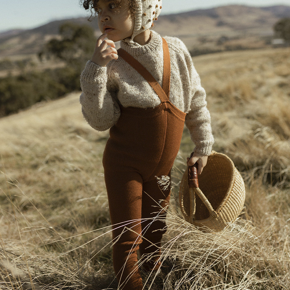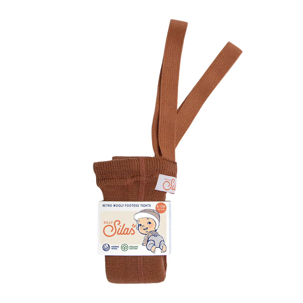 Die fusslose Strumpfhose Wooly Ginger von Silly Silas bringt mit ihrer goldenen Ingwernuance Licht in graue Wintertage. Der warme Farbton erinnert an herbstliche Spaziergänge, flackerndes Kerzenlicht und selbstgebackene Kekse – und macht jedes Outfit ein wenig sonniger. Gefertigt aus einer hochwertigen Mischung aus Merinowolle und Bio-Baumwolle, schenkt sie atmungsaktive Wärme, die den kleinen Körper sanft umhüllt und die Temperatur zuverlässig reguliert. Die elastischen Träger sorgen für sicheren Sitz bei jeder Bewegung – sei es beim Krabbeln durchs Wohnzimmer, beim Toben mit Geschwistern oder beim Ausruhen in der Trage. Die fusslose Form ermöglicht barfüssige Freiheit und ist ideal für aktive Kinder, die gern auf Entdeckungsreise gehen. Ob zu Hause auf dem Spielteppich oder eingekuschelt unter einer Decke – diese Strumpfhose verbindet Funktionalität mit einem liebevollen, durchdachten Design. Ein Kleidungsstück, das Wärme schenkt und gleichzeitig Platz für Abenteuer lässt.