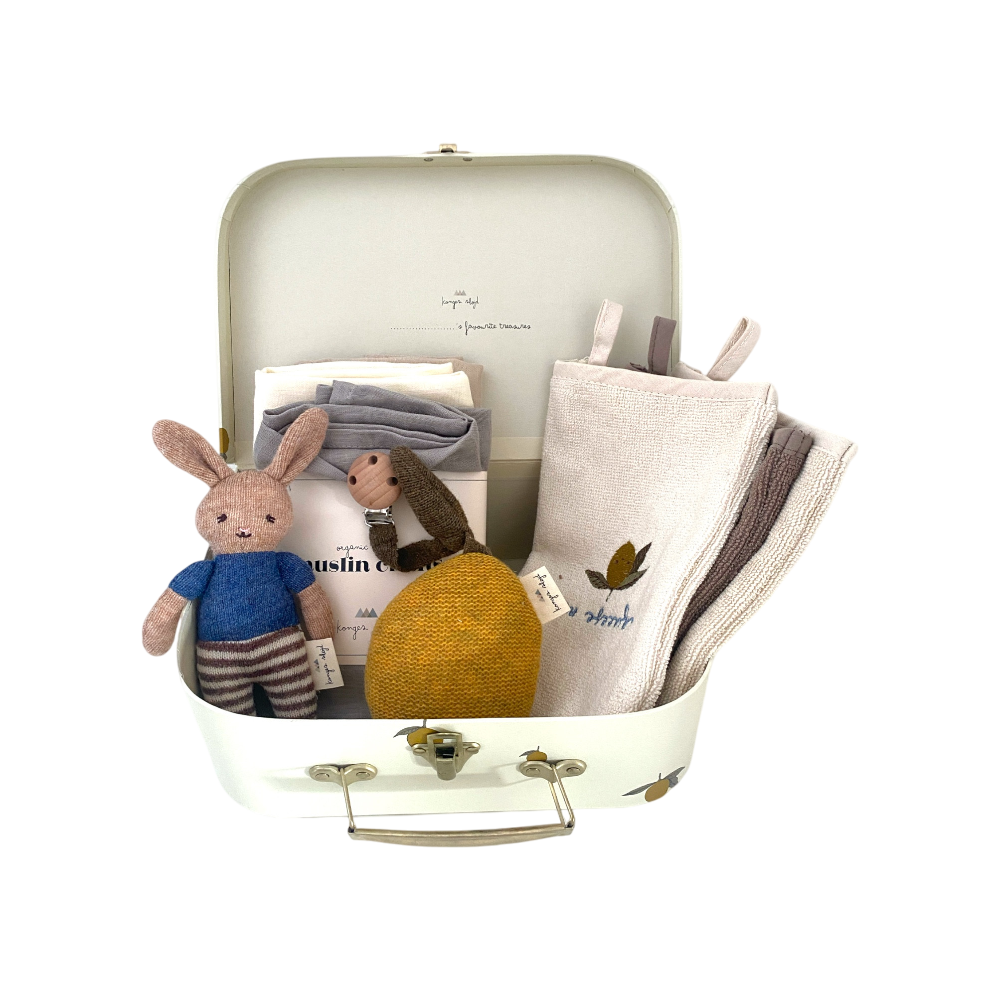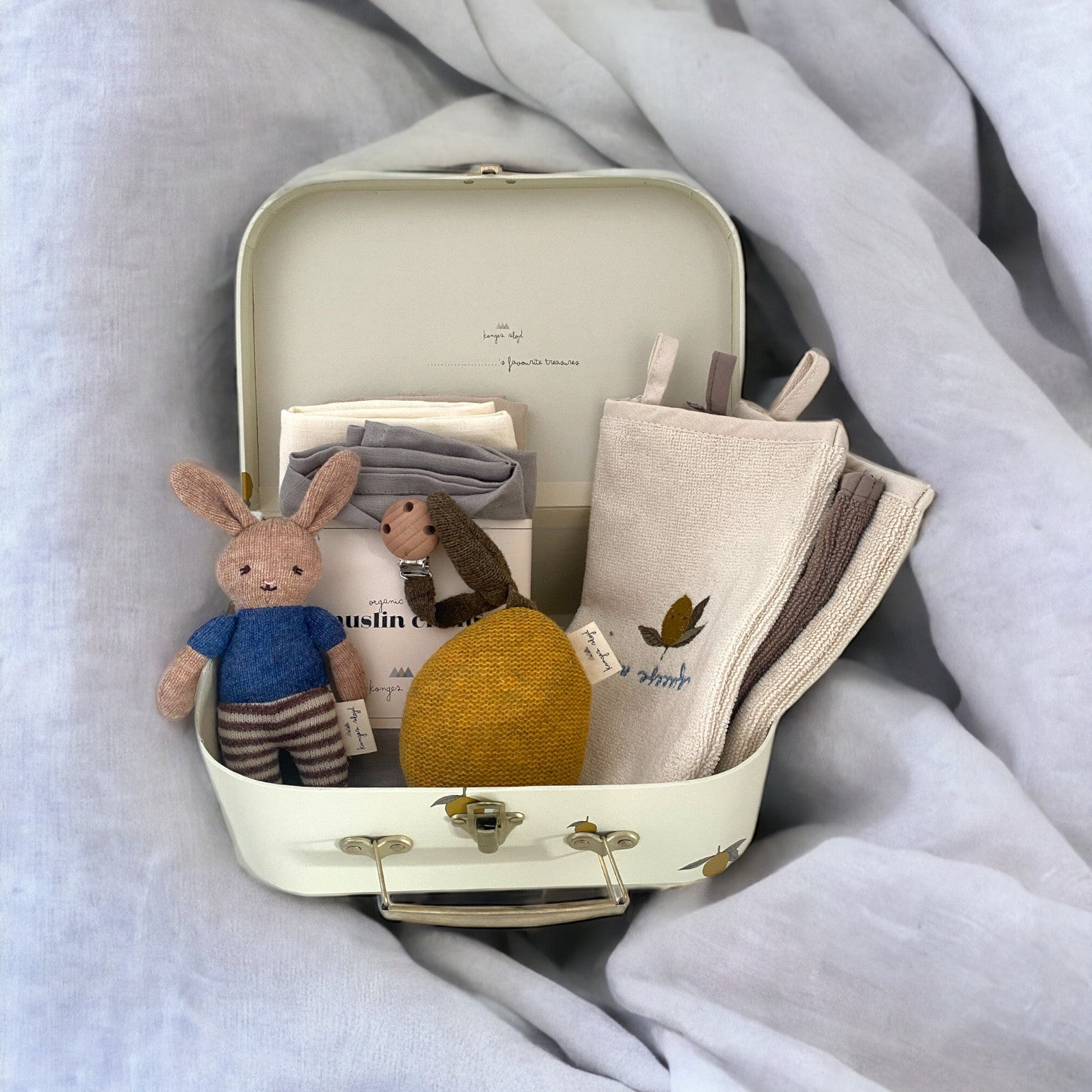 Die Geburt eines neuen Menschenkinds ist für die neuen Eltern, Familie und Freunde ein unvergessliches Ereignis. Natürlich möchte man ein spezielles Geburtsgeschenk machen. Etwas, das nicht nur nützlich und schön, sondern auch nachhaltig ist. Unser Organic Geschenkset zur Geburt im Lemon Love Koffer ist die ideale Aufmerksamkeit auch für die Babyshower Party. Der Lemon Love Koffer aus festem Karton kann zum Aufbewahren von Erinnerungen oder Spielsachen genutzt werden. Das Geschenkset Lemon Love enthält: