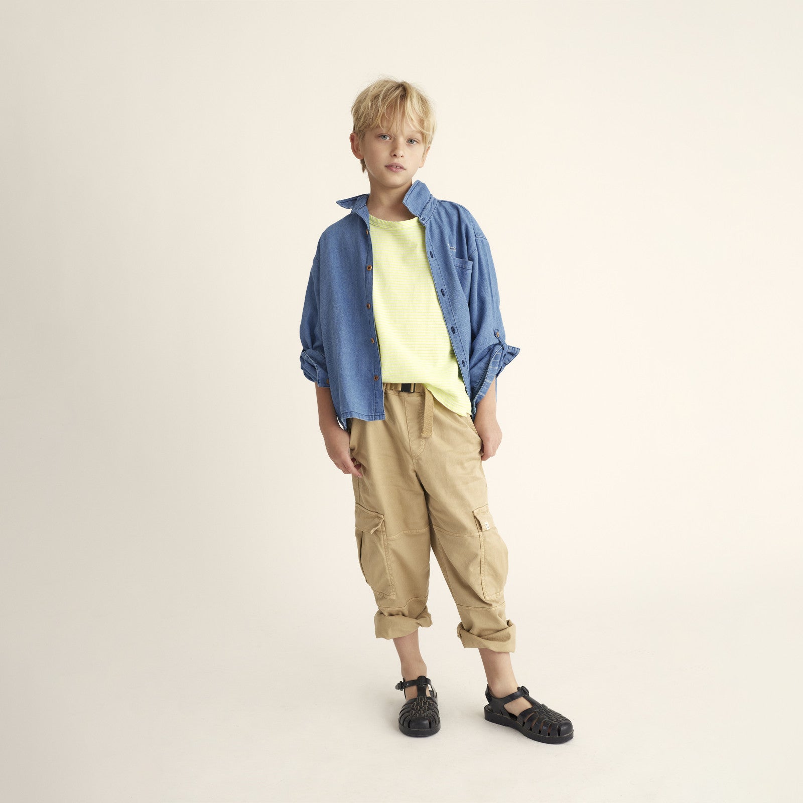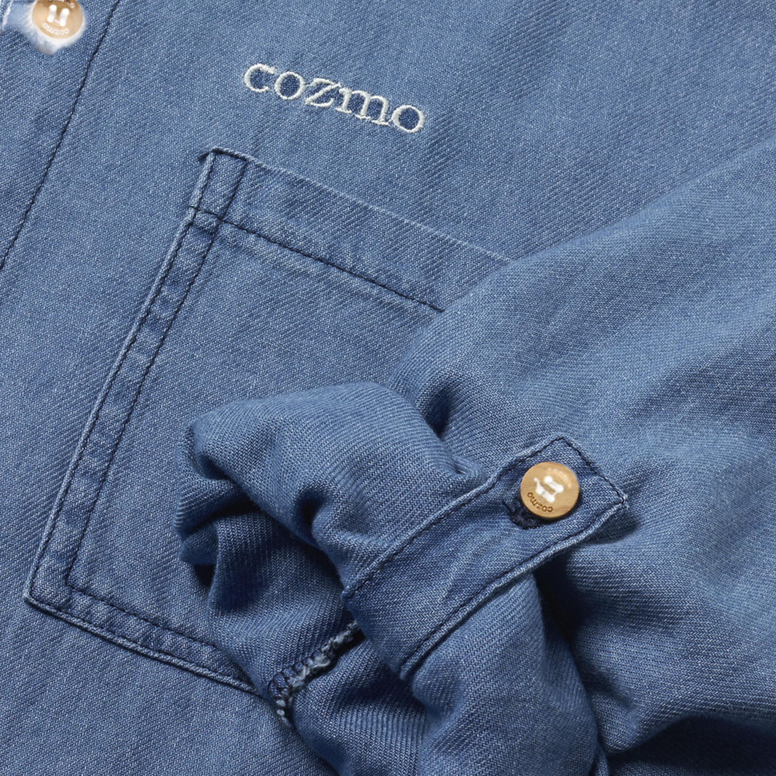 Das Jeanshemd Eloi von Cozmo kombiniert zeitloses Design mit nachhaltiger Produktion. Gefertigt aus weicher Baumwolle in klassischer Denim-Optik, bietet dieses Oberhemd höchsten Tragekomfort und eine lässige Ausstrahlung. Die lockere Passform ermöglicht uneingeschränkte Bewegungsfreiheit und eignet sich damit ideal für aktive Kinder. Dank der hochwertigen Materialien ist das Kinderhemd langlebig und strapazierfähig, perfekt für den Alltag und festliche Anlässe. Die Knopfleiste sowie die praktische Brusttasche unterstreichen den klassischen Stil. Wie alle Produkte von Cozmo wird das Hemd lokal und nachhaltig hergestellt, wodurch es die Werte von Qualität, Umweltbewusstsein und Stil vereint.