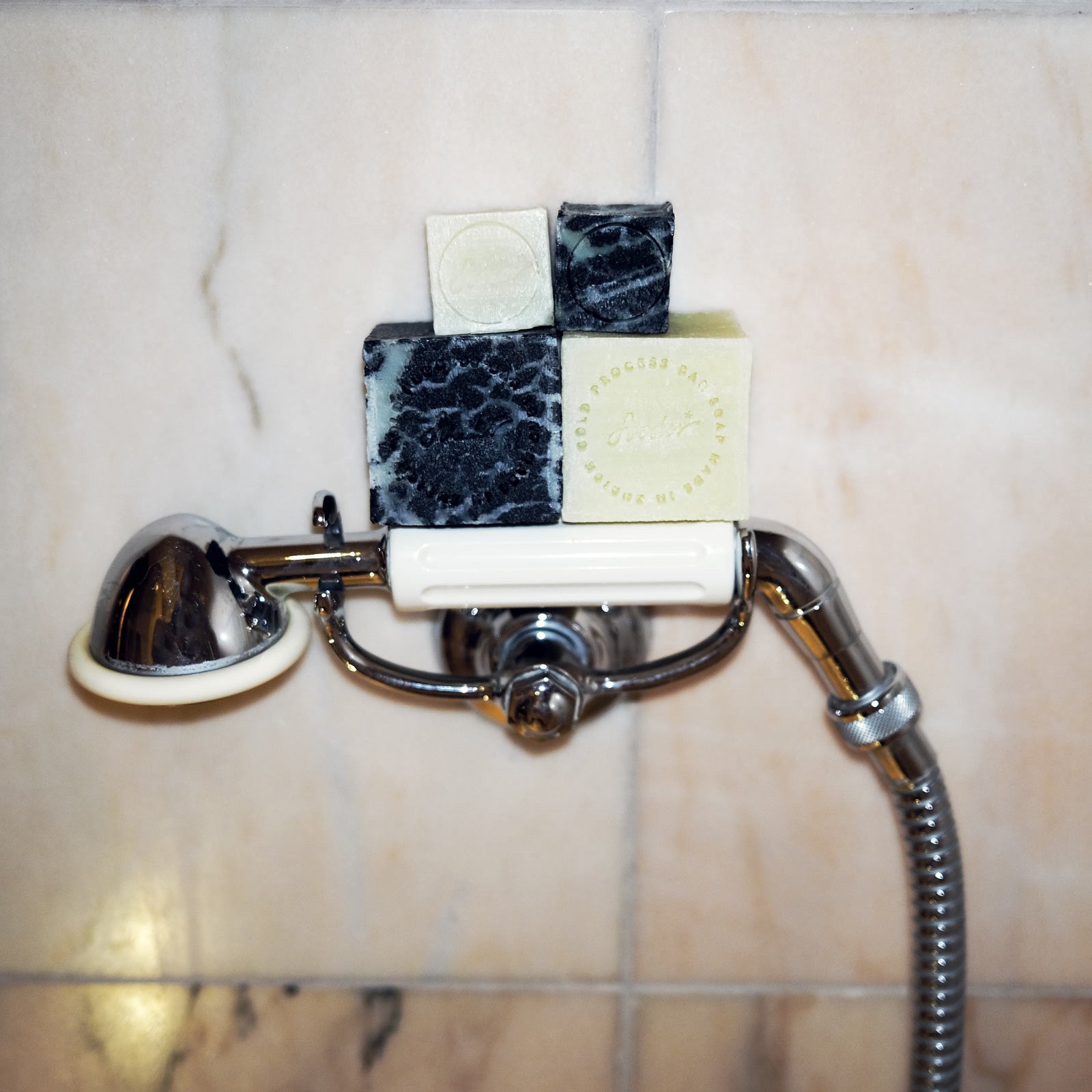 | Material | Bio-Öle von Hanf, Rizinus, Kokosnuss und Oliven sowie Shea- und Kakaobutter / mit Kohle angereichert für Peeling und ein glattes, sauberes Gefühl auf Haut und Gesicht |