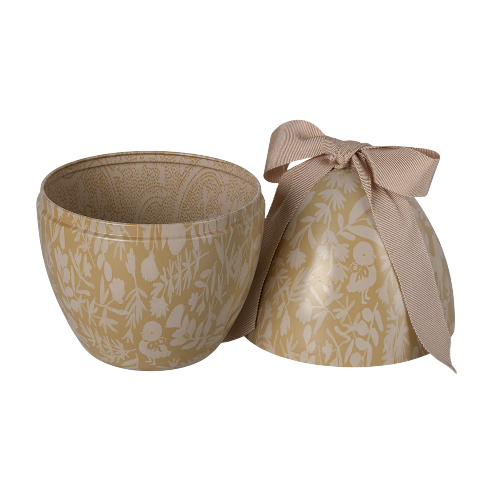 Dieses wunderschön gestaltete Osterei aus Metall in der Farbe Cream Yellow ist ein zauberhaftes Highlight für Ostern. Mit seinem feinen Blumenmuster und einer dekorativen Schleife ist es nicht nur ein praktischer Behälter, sondern auch ein Hingucker für jede Frühlingsdekoration. Das Ei lässt sich öffnen und eignet sich perfekt, um kleine Überraschungen, Süssigkeiten oder Geschenke zu verstauen. Kombiniere es mit anderen Maileg-Produkten wie dem Maileg Osterhasen oder dem Maileg Miniatur-Osterkorb, um eine noch festlichere Atmosphäre zu schaffen. Dank seiner robusten Verarbeitung kann es immer wieder verwendet werden und fördert nachhaltige Ostertraditionen. Mit einer Höhe von 10 cm passt es wunderbar ins Kinderzimmer oder als Ergänzung zu anderen Maileg-Produkten. Ein charmantes Stück, das sowohl zu Ostern als auch das ganze Jahr über Freude bereitet.