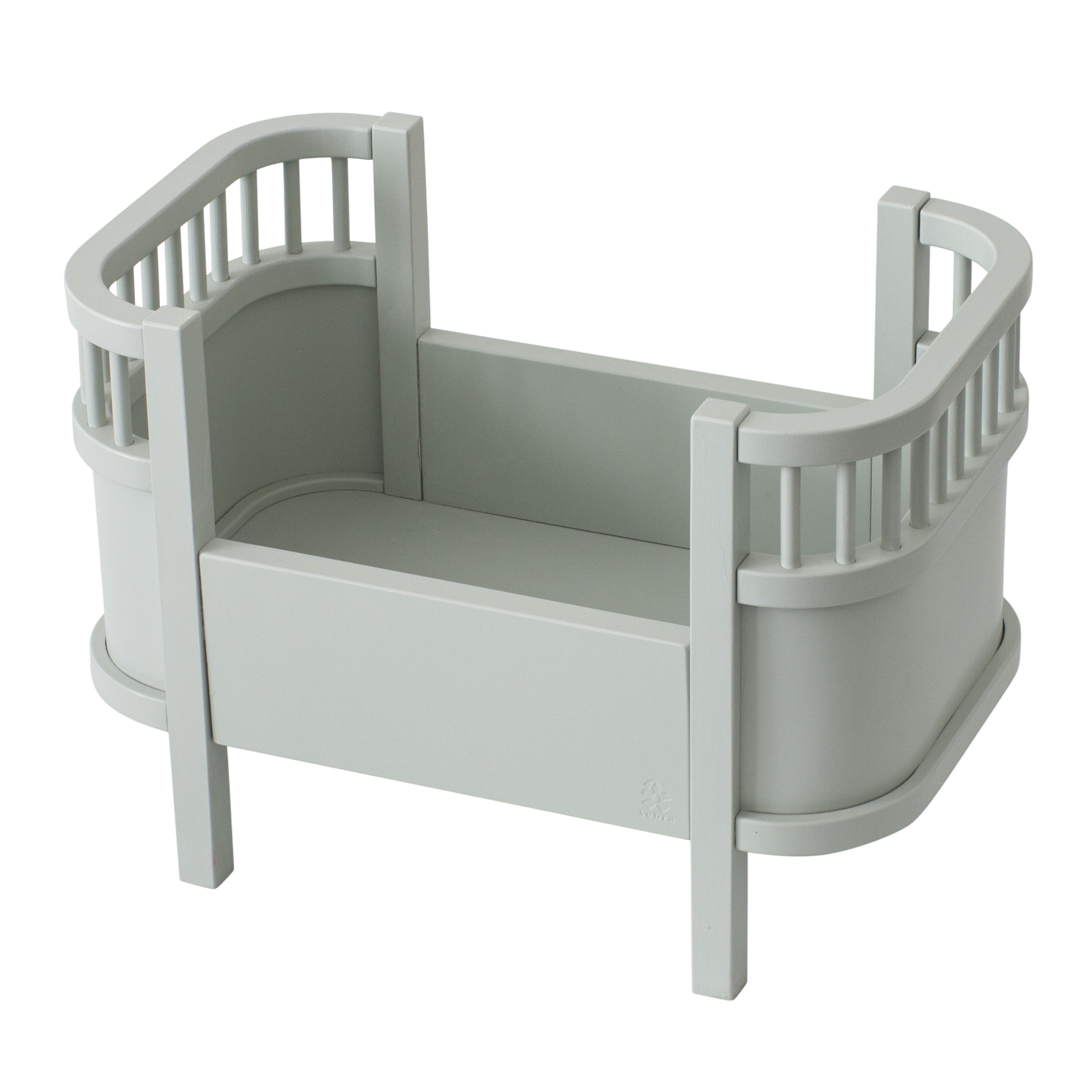 Stilvolles Puppenbett für kleine Puppenmamas. Das Design des Sebra Puppenbetts orientiert sich an den Proportionen des Sebra-Betts und zeichnet sich durch klassische runde Ecken, sowie das charakteristische Gitter am Bettende aus. Es ist nicht nur ästhetisch ansprechend, sondern auch robust und langlebig. Die dezente grüne Farbe passt zu verschiedenen Einrichtungsstilen und verleiht dem Kinderzimmer eine frische und moderne Atmosphäre.