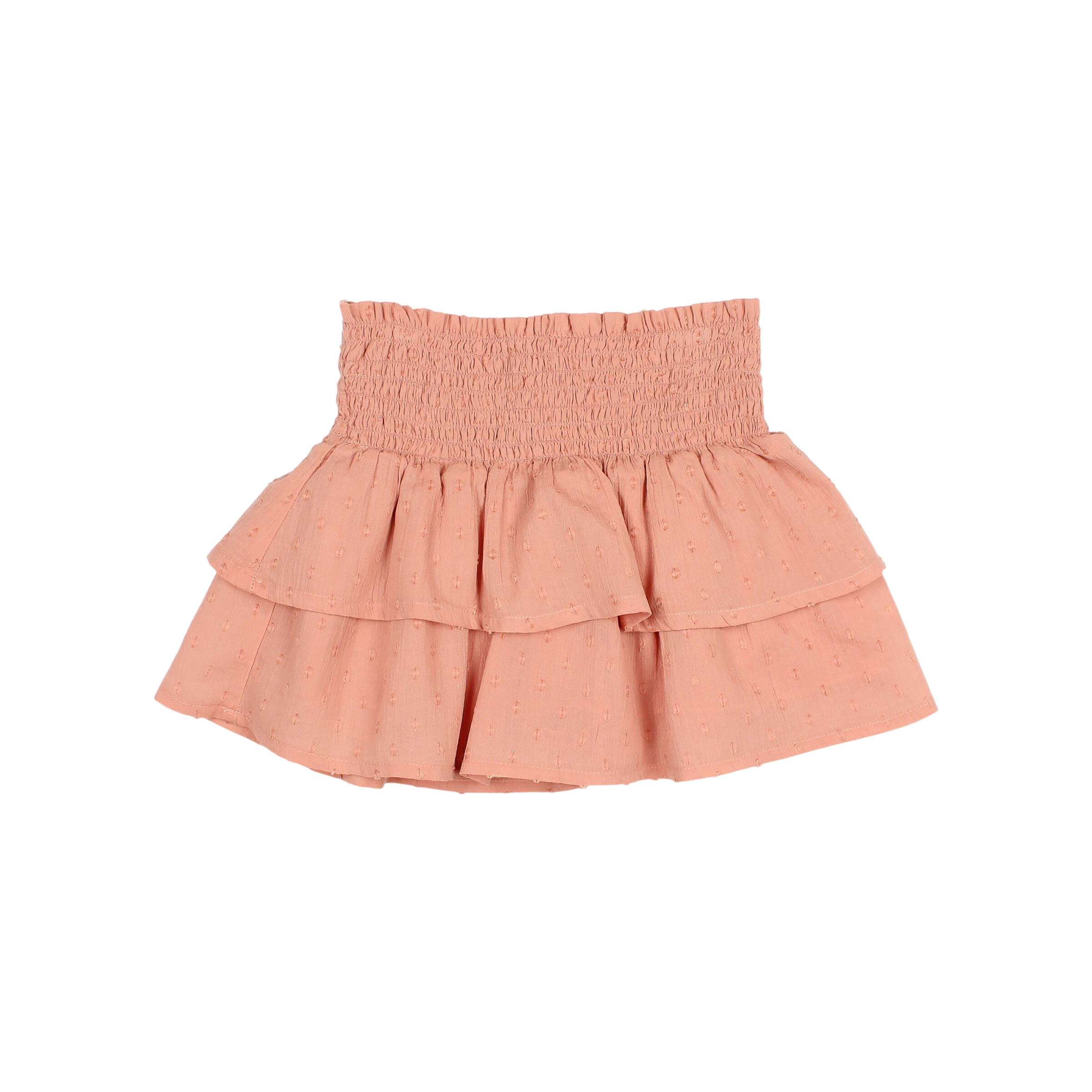 Der kurze Plumeti-Rock von Buho hat einen angenehm breiten Gummibund, der für den nötigen Tragekomfort im Alltag sorgt. Der Rock ist mit einem feinen Punktmuster verziert.