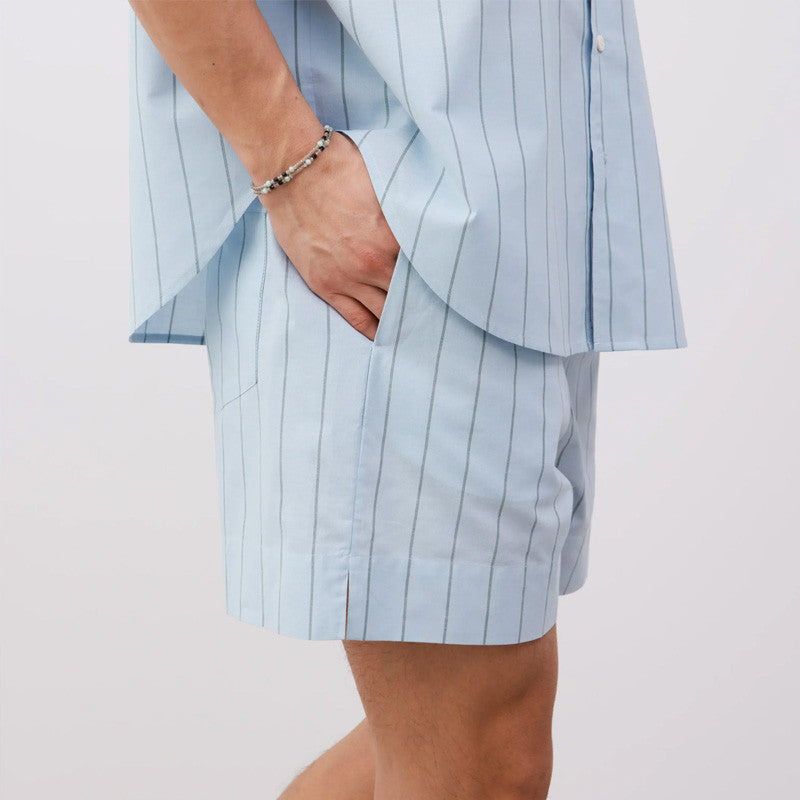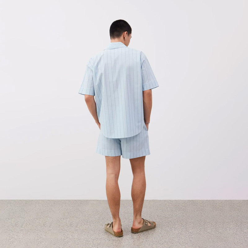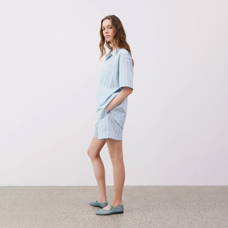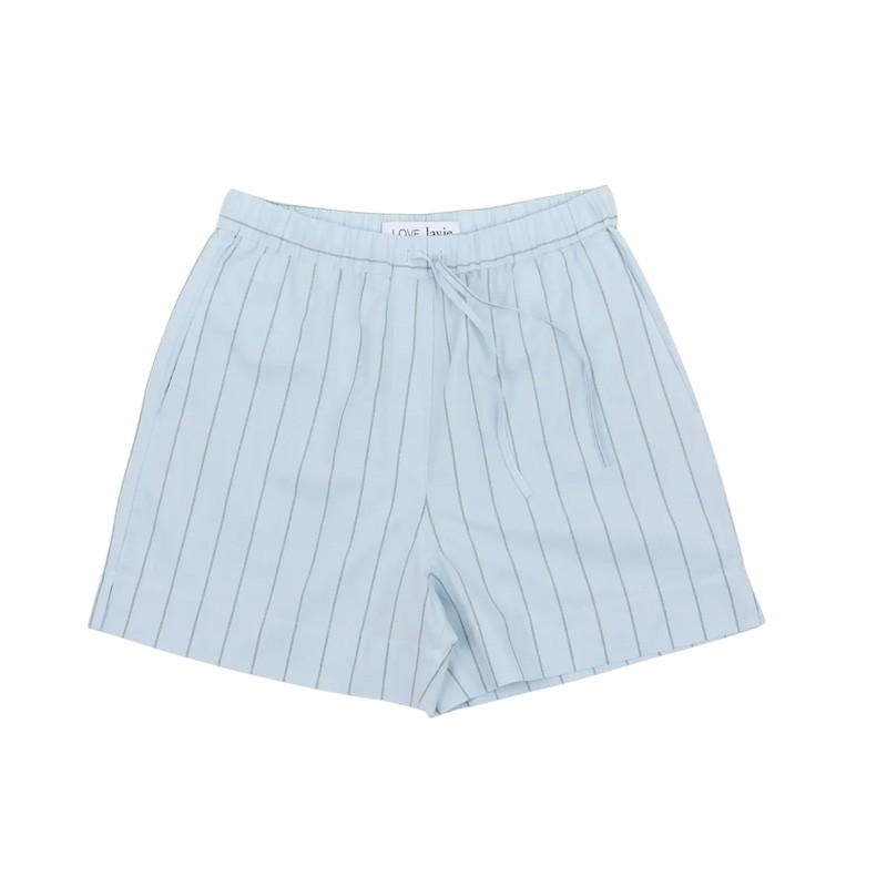 Die Shorts John in Sky von Lavie ist eine Hommage an den Sommer: leicht, klar, entspannt. Das sanfte Hellblau und die feinen Streifen wirken erfrischend ruhig, fast meditativ. Hergestellt aus atmungsaktiver Bio-Baumwolle und gefertigt unter fairen Bedingungen in Europa, bietet sie mit ihrem elastischen Bund und dem Bindebändel maximalen Komfort – ohne auf Stil zu verzichten. Die moderne, leicht verkürzte Passform macht sie zum perfekten Begleiter für freie Tage, ruhige Stunden und sonnige Wege. Ob zu Hemd, Top oder barfuss am Seeufer – John Sky schenkt dir das Gefühl, angekommen zu sein. Lavie verbindet in diesem Design Natürlichkeit mit schlichter Eleganz für alle, die sich in ihrer Kleidung wiedererkennen möchten.