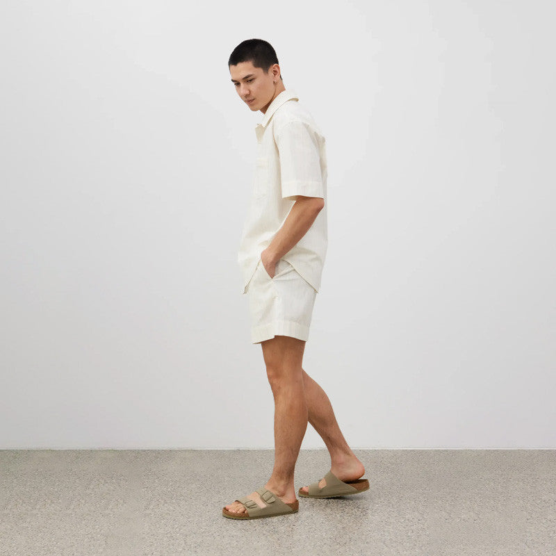 Die Shorts John in Sky von Lavie ist wie ein luftiger Moment an einem Sommertag – zurückhaltend, leicht, klar. Der helle Farbton wirkt wie Sonnenlicht auf der Haut, während die feine Bio-Baumwolle für ein angenehmes Tragegefühl sorgt. Der elastische Bund mit Kordelzug passt sich an, ohne einzuengen, und die dezenten Seitenschlitze schenken Bewegungsfreiheit. Ob am See, in der Stadt oder im Garten – John lässt sich mühelos kombinieren und begleitet dich durch Tage voller Leichtigkeit. Fair produziert in Europa und bewusst schlicht gestaltet, steht diese Shorts für das, was bleibt: Komfort, Qualität und eine Haltung, die Ruhe schenkt. Lavie zeigt, dass Sommermode auch still wirken darf.