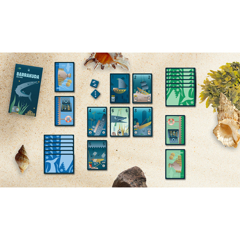 Dein Ziel? So viel Gold wie möglich zu ergattern. Aber hüte dich vor den bissigen Barrakudafischen, die zwischen den Wracks lauern, sie könnten dich bei deiner Suche aufhalten. Deine Strategie ist es, den Gefahren auszuweichen und deinen Schatz so schnell wie möglich an die Oberfläche zu bringen. Benutze deine Spezialkarte, um die Barrakudas auf deine GegnerInnen loszuschicken und sie dazu zu bringen, Zeit zu verlieren.