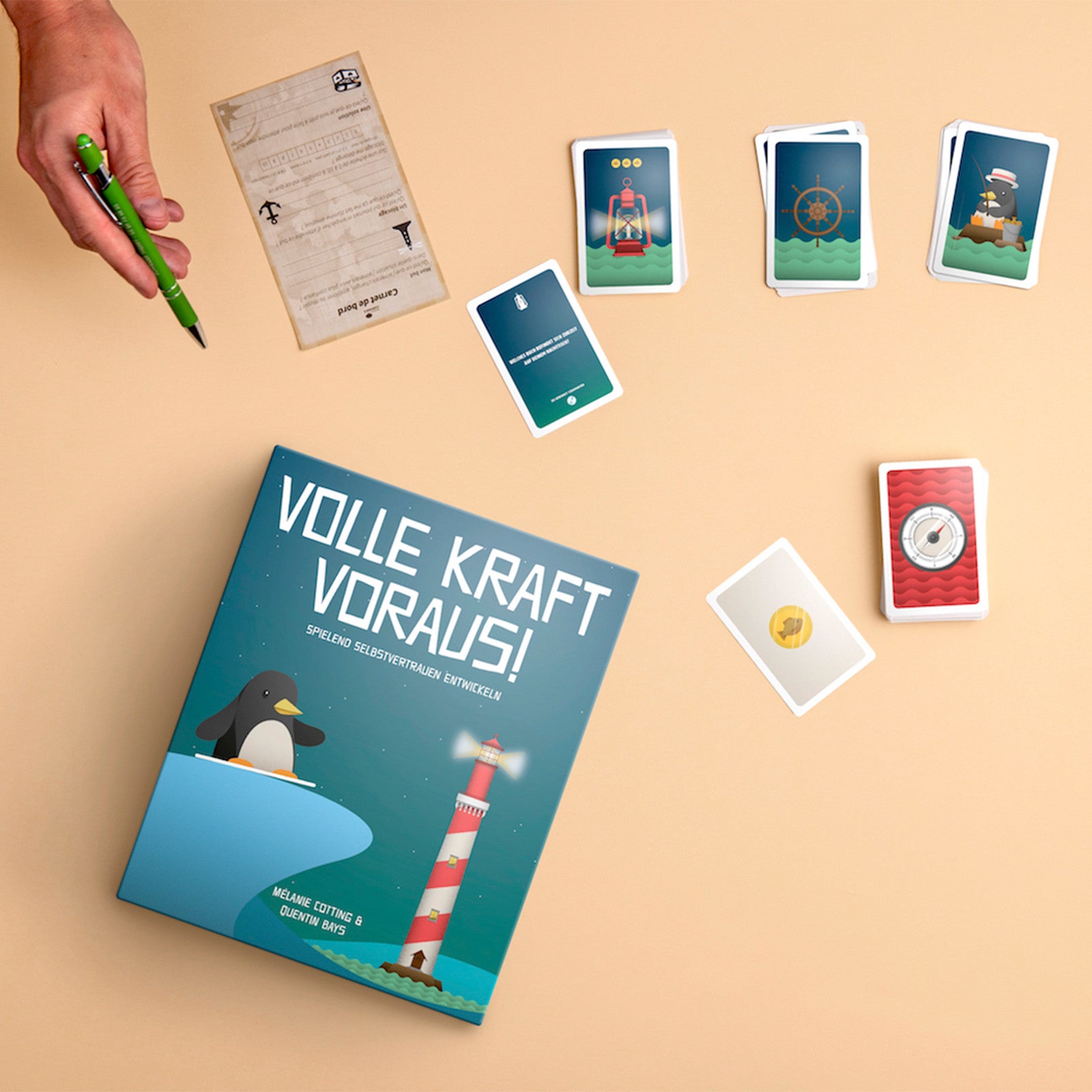 Eine riesige Welle nähert sich dem Leuchtturm, den ihr zu bauen versucht. Diamanten können sie verlangsamen, aber um zu gewinnen und eure Ziele zu erreichen, müsst ihr miteinander sprechen, euch kennenlernen und austauschen. In Volle Kraft voraus! wählt jeder Spieler ein persönliches Ziel aus oder eine Situation, die er verbessern möchte. Nutzt dann die Erfahrung der anderen und entwickelt konkrete Strategien für die Praxis.
