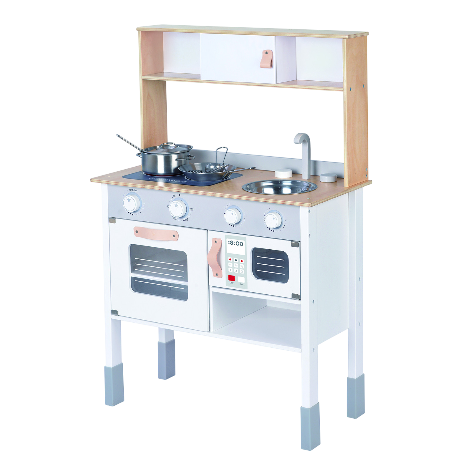 Schöne moderne Spielküche aus hochwertigem Holz gefertigt und in modernen Farben gehalten.