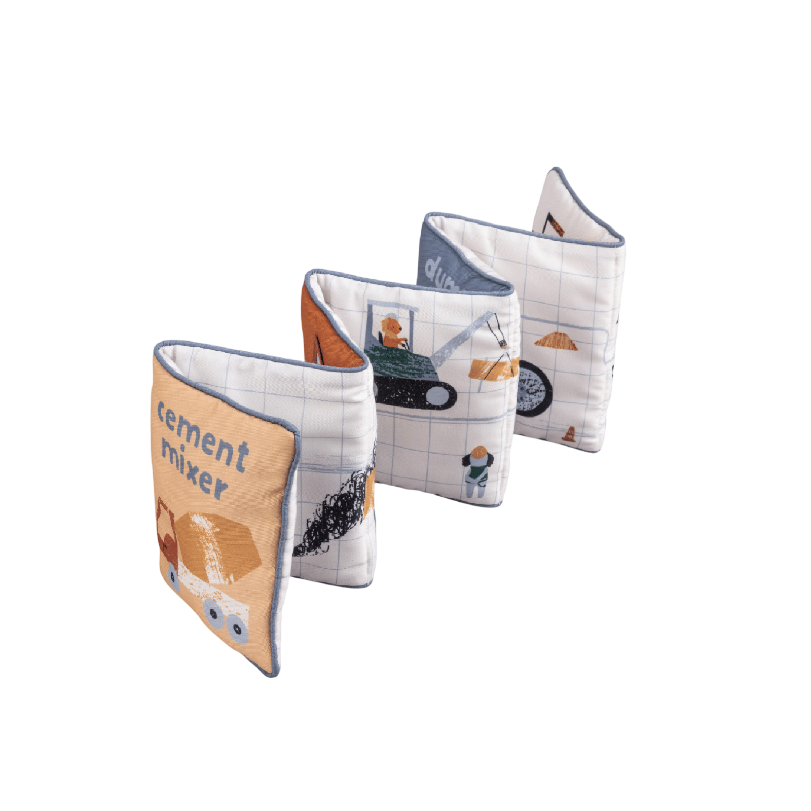 Weiches Baby Stoffbuch mit Illustrationen aus der Sebra Kollektion Busy Builders ein Bauuniversum voller Spaß, Aktivitäten und Begeisterung, um gemeinsam etwas zu bewirken und etwas Grosses zu schaffen.