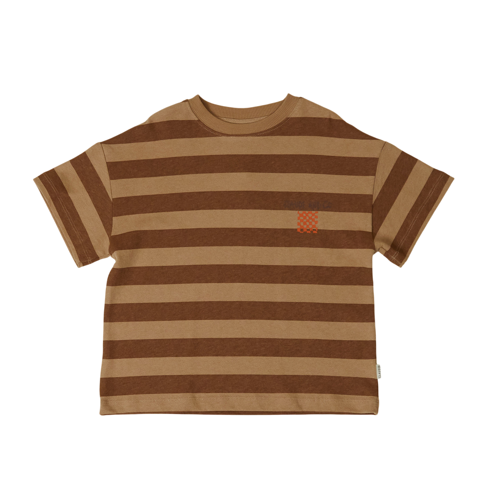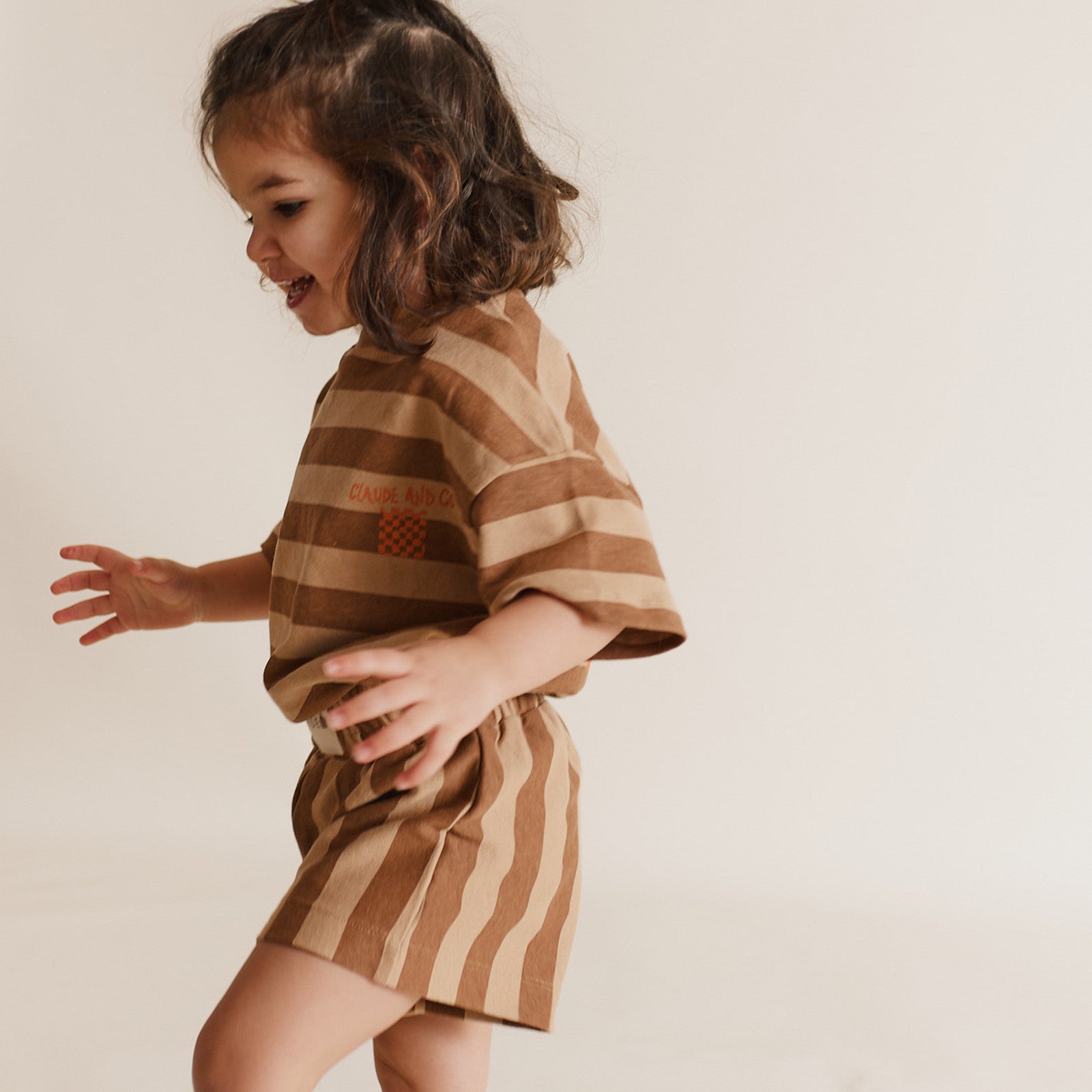 Das Claude & Co T-Shirt Rowan Stripe kombiniert einen entspannten Look mit nachhaltiger Qualität. Hergestellt aus weicher, atmungsaktiver Bio-Baumwolle, bietet dieses Shirt höchsten Tragekomfort und eine lockere Passform. Das klassische Streifenmuster in warmen Brauntönen verleiht dem Shirt eine zeitlose Ästhetik, während das dezente gestickte Logo-Detail für einen subtilen Marken-Touch sorgt. Die kurzen Ärmel und der gerade Schnitt machen es zum perfekten Basic für warme Tage oder als Layering-Teil in den kühleren Monaten. Ob kombiniert mit Shorts, Latzhosen oder unter einem Pullover – dieses Unisex-T-Shirt ist ein vielseitiges, langlebiges Kleidungsstück für den Alltag.