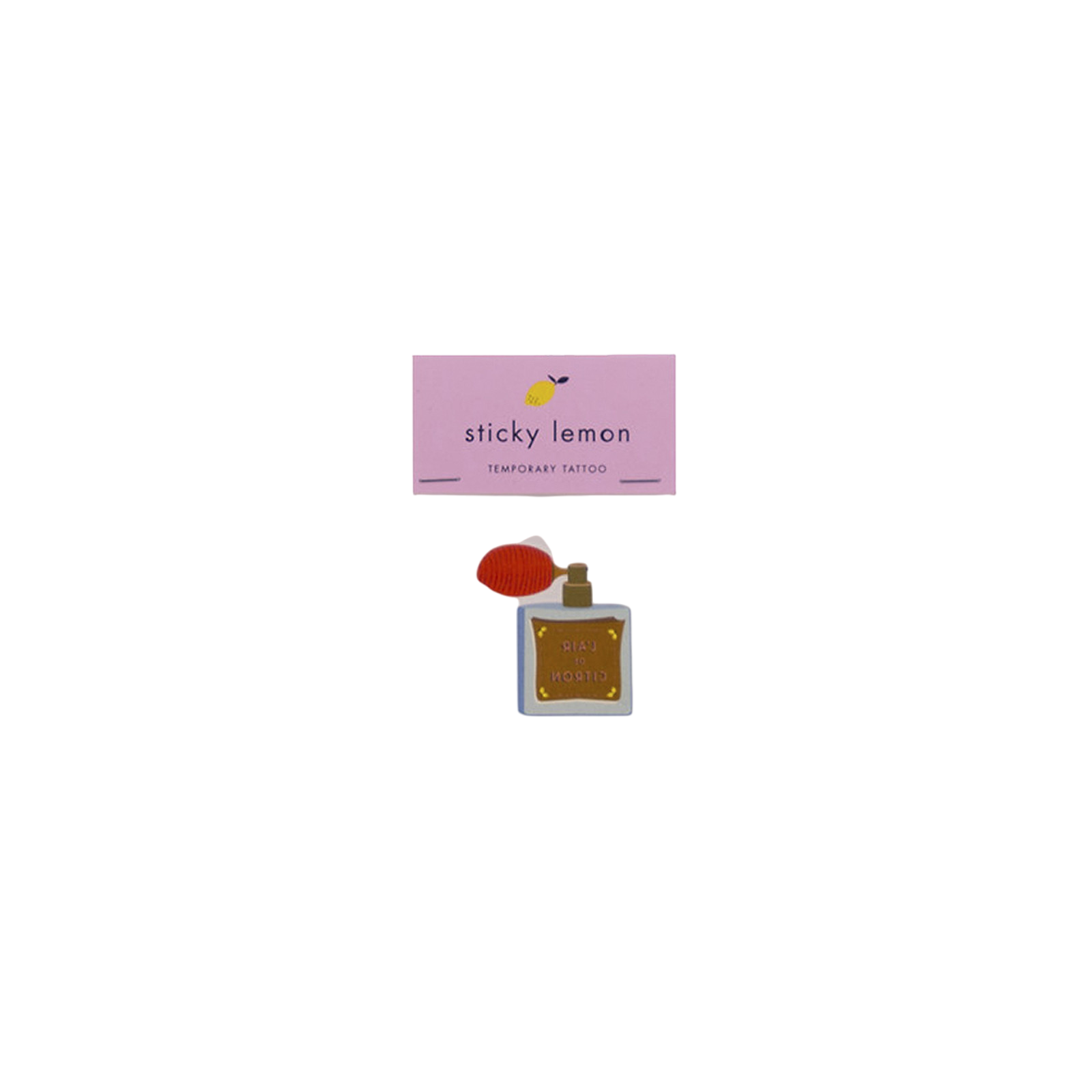 Wiederabwaschbares Tattoo von Sticky Lemon in Form einer Parfümflasche.