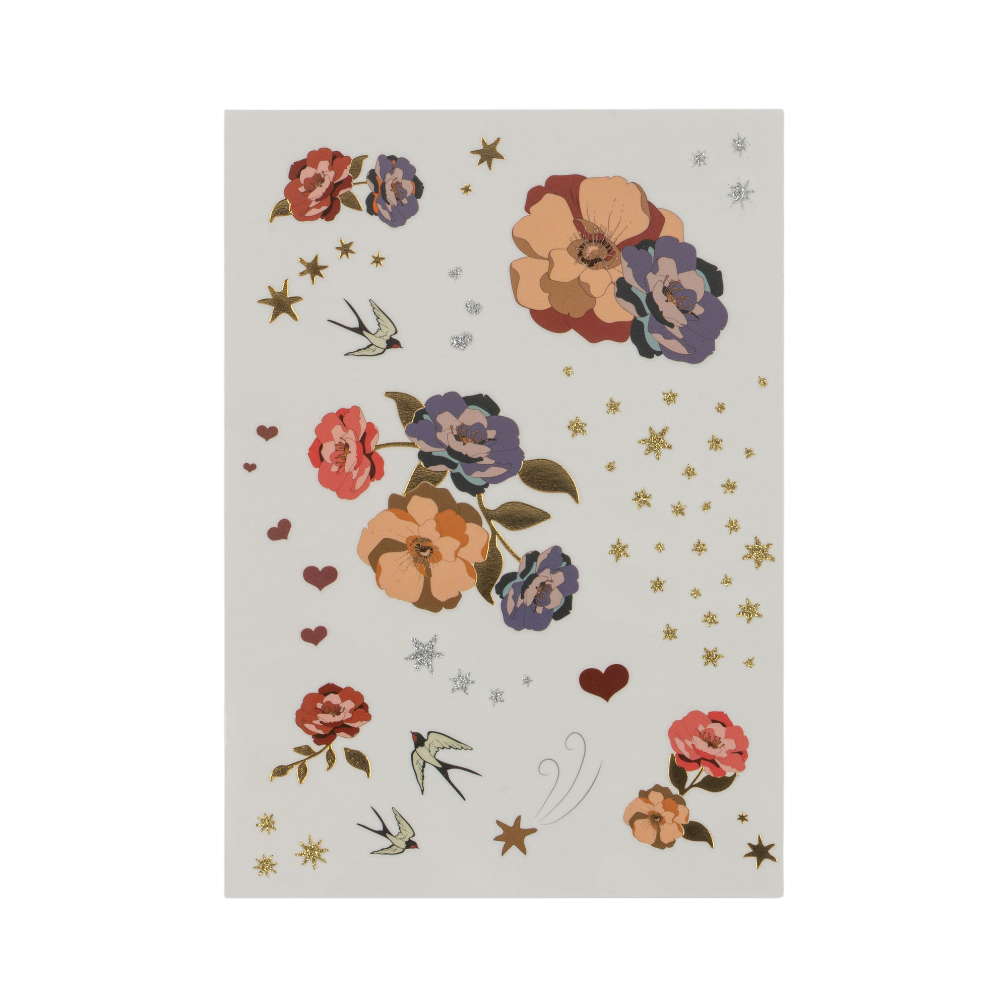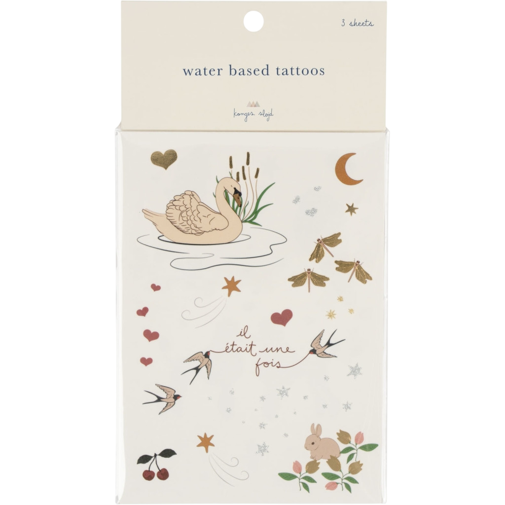 Mehr als 30 temporäre Tattoos mit süssen Motiven von Konges Slojd auf drei Bögen verteilt.