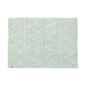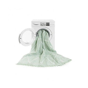 Zarte Mintfarbe mit geraden und zickzackförmigen Linien in Weiß. Fransen an den Kanten.