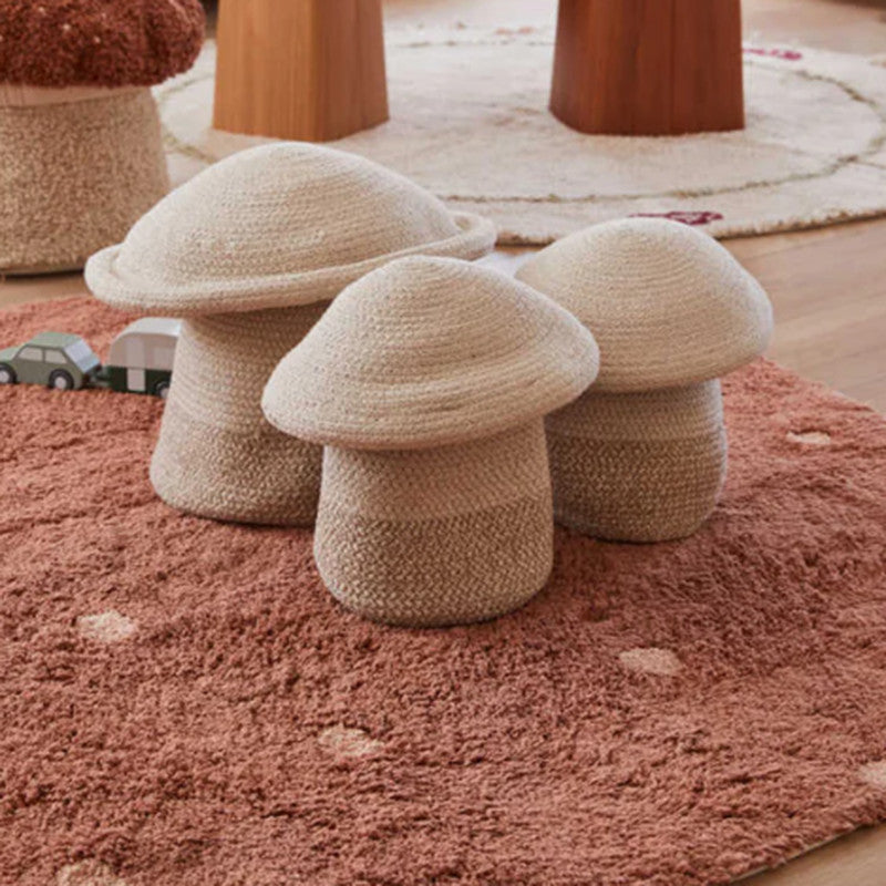 Ein weicher, plüschiger Baumwollteppich mit einem Pünktchenmuster, das nie aus der Mode kommt. Der Teppich Round Dot ist aus extra dichtem, weichem Baumwollflor getuftet und in drei schönen Farbkombinationen erhältlich: Kastanie mit rosa Punkten, Rose mit natürlichen Punkten und Blue Sage mit blauen Punkten.