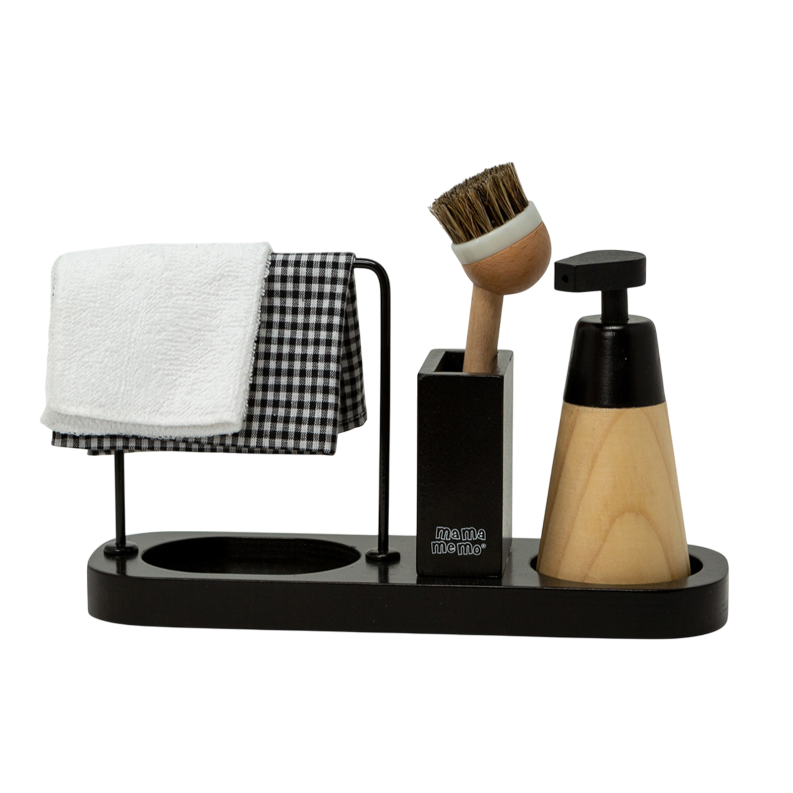 Das Mamamemo Geschirrspülset ist ein kleines, aber vielseitiges Zubehör für die Kinderküche. Es enthält eine Bürste, eine Seifenflasche und zwei Handtücher, die auf einem stilvollen Ständer arrangiert sind. Kinder können damit spielerisch das Spülen nachahmen und ihren eigenen kleinen Haushalt führen. Ob sie Puppengeschirr waschen oder die Küche ihrer Kuscheltiere aufräumen - dieses Set regt zu kreativen Rollenspielen an und schult gleichzeitig Feinmotorik und soziale Kompetenzen. Das minimalistische Design und die hochwertigen Materialien passen ideal in jede Spielküche. Es ist nicht nur ein Lernspielzeug, sondern auch eine Einladung, alltägliche Aufgaben mit Freude nachzuspielen. Perfekt für Kinder, die Spass daran haben, den Alltag zu entdecken.