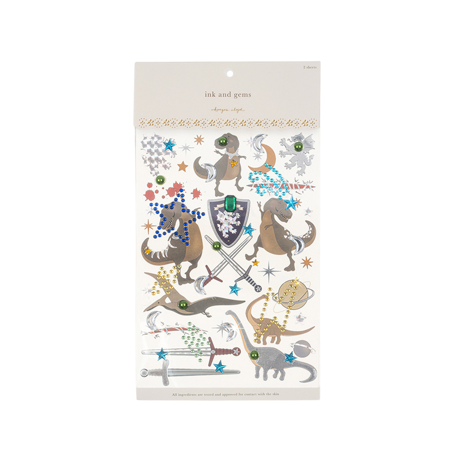 Die Aufkleber und Tattoos von Konges Sløjd sind eine wundervolle Möglichkeit, Kinder in eine Welt voller Fantasie und Abenteuer eintauchen zu lassen. Mit liebevoll gestalteten Dinosaurier- und Rittermotiven können sie sich in einzigartige Geschichten versetzen und spielerisch neue Welten entdecken. Diese kreativen Sets sind ideal für eine Dinosaurier-Geburtstagsparty, einen Bastelnachmittag oder einfach für spontane Spielmomente, in denen die Vorstellungskraft keine Grenzen kennt. Die hautfreundlichen Tattoos lassen sich kinderleicht auftragen und ebenso unkompliziert wieder entfernen – perfekt für unbeschwertes Spielen und abwechslungsreiche Verkleidungsideen für Fasnacht. Ob auf der Haut oder als kreative Dekoration für Bastelprojekte, die einzigartigen Motive sorgen für zahlreiche Gestaltungsmöglichkeiten. Besonders in einer Verkleidungskiste sind sie eine tolle Ergänzung, um Abenteuer nachzuspielen. Passend dazu lassen sich die Tattoos mit Malstiften oder Stickerbüchern von Konges Sløjd kombinieren, um das kreative Erlebnis noch weiter auszubauen. Sie sind auch eine tolle Geschenkidee für Kinder ab 6 Jahren, die sich gerne verkleiden und fantasievolle Geschichten erfinden. Ein liebevolles Detail, das für strahlende Kinderaugen sorgt und den Alltag mit einer Extraportion Kreativität bereichert.